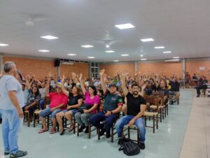 “Encaminhamos ao Executivo a proposta aprovada em Assembleia, que previa o piso mínimo estadual de R$ 1.756,00. Porém, em janeiro, quando iniciaram as negociações, já havia a previsão de alteração do piso mínimo estadual. Como o novo valor ainda não havia sido definido até o dia 29 de janeiro — com a confirmação de que a definição ficaria para março —, o sindicato apresentou uma nova proposta à prefeita: aplicar 8% sobre o piso estadual de R$ 1.756,00, o que resultaria em aproximadamente R$ 1.900,00. A prefeita, por sua vez, apresentou a proposta de R$ 1.885,00, além de 4% de reajuste no vale-refeição que foi apresentada e aprovada em Assembleia.”